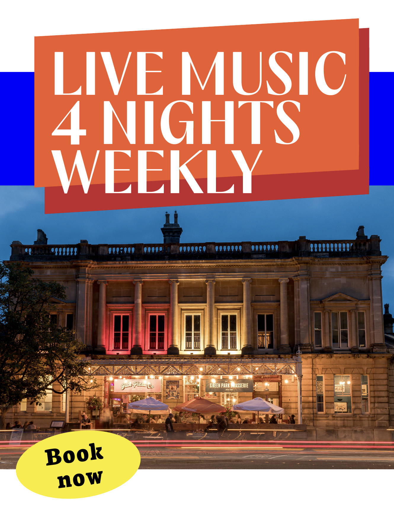 Live jazz, funk, soul and swing music at our sister business, Green Park Brasserie, 4 nights a week in the heart of Bath. During the spring and summer months we host alfresco live music nights and festival events.